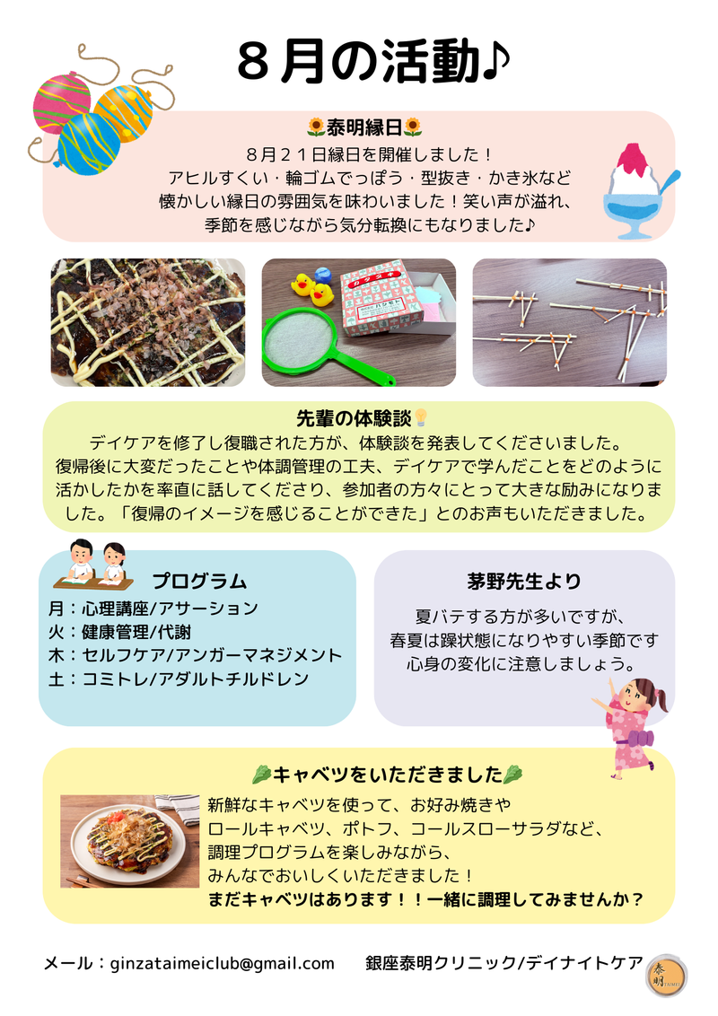 仕事内容 \要資格&実務経験2~3年程度ある方/ *実務未経験の方も相談OK!人柄採用です! *月収29万円! *復職支援に注力しているクリニック! *銀座駅徒歩2分/アクセス抜群の好立地! //////////////// <電話でのお問い合わせ> 03-5537-3496(採用担当)まで //////////////// 【仕事内容】 働く世代の心の健康をサポートする精神保健福祉士として、デイケア・ナイトケアの運営やケースワークをお任せします。 ~~ 具体的には 〇デイケア・ナイトケアの運営(プログラム実施) 〇ケースワーク 〇患者様のご相談対応 〇集団精神療法 〇復職訓練のサポート など ~~ 入社後について 入社後は習熟度に合わせて、先輩スタッフが丁寧にお教えします。独り立ちするまでしっかりフォロー。誰か教える人がいる状況を常にキープするので、わからないことがある際はいつでも聞いてくださいね◎ //////////////// 【患者様に寄り添う医療】 当院は近隣の会社で働く方を中心に、幅広い年齢層の患者様に利用いただいている心療内科・精神科クリニックです。ただお薬を出すだけではなく、患者様一人ひとりに向き合い相談しながら治療方法を提案し、精神的な健康をサポート。「ありがとう」と声をかけてもらえる機会が多く、人の役に立っていることを実感できます◎ 【充実したデイケア・ナイトケア】 自立した日常生活や社会参加、復職・復学を目的とした日帰りのリハビリテーション施設を運営している当クリニック。復職・復学支援に力を入れており、主にリワーク目的で参加されている患者様のサポートを行います。プログラム実施など、専門性を活かせる環境です。 【働く世代の復職を支える】 銀座という立地のため、患者様の多くは仕事をしているか、それによって体調を崩し休職に至った方々で、うつ病、適応障害、双極性障害など、復職を目指す方が中心。集団精神療法や復職訓練を通じて、患者様が社会復帰していく過程に深く関われるやりがいのある環境です。 【患者様と築く信頼関係】 当院の魅力は、患者様との距離が近いこと。一人ひとりとしっかり向き合い、信頼関係を築きながら支援を行うことができます。患者様が回復し、変化していく姿を間近で見られることが仕事の大きなやりがい。「信頼してもらえている」と実感できる瞬間が、この仕事の醍醐味です。 【多職種連携でチーム医療】 医師約10名、看護師・心理士・精神保健福祉士など約10名が在籍し、職種を超えて協力し合える環境です。風通しが良く、話しやすい雰囲気の良さが自慢*何かあればすぐに相談でき、人間関係も良好なので、安心して働けますよ◎ 【柔軟な働き方と正社員登用制度】 勤務は月~土のうち週5日 平日:11:00~20:00 土曜:10:00~18:00 シフト制で基本は固定勤務となりますので、プライベートの予定も組みやすい環境◎希望に応じてお休みの日を調整することもできます! //////////////// ~~ 当クリニックについて 銀座で心療内科・精神科クリニックを運営している医療法人社団泰明。デイケア・ナイトケアも併設し、働く世代の精神的健康をサポート。患者様一人ひとりに寄り添い、復職・社会復帰までを見据えた治療を提供しています。 ////////////////