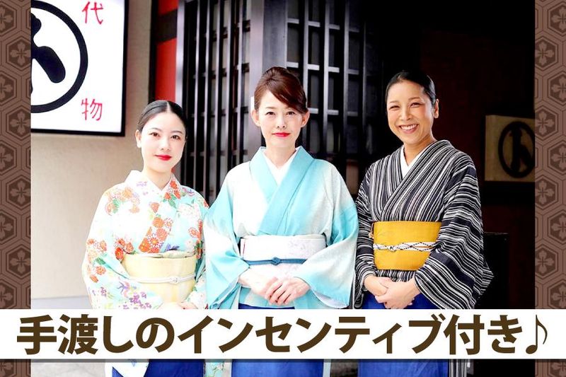 求めている人材 未経験歓迎!人と接するのが好きな方 お人柄重視の採用です! 着付けから丁寧にお教えします! 20~40代の女性スタッフが活躍中! スタッフ同士での食事会や旅行に行ったりと みなさん仲が良いのも長く続く秘訣です! 正社員デビューも応援! <こんな方にぴったり!> ◎調理学校での経験を活かしたい方 ◎休みをしっかり確保したい方 ◎飲食店でのスキルを活かしたい方 などなど 仕事もプライベートも楽しみたい! そんな方にピッタリの職場です! 日本語検定N1、またはN2をお持ちの方 未経験大歓迎 経験者歓迎 フリーター歓迎 学歴経験不問 ブランクある方歓迎