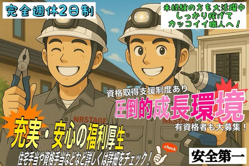 第二種電気工事士の経験者優遇!転勤なし/年間110日以上休み
