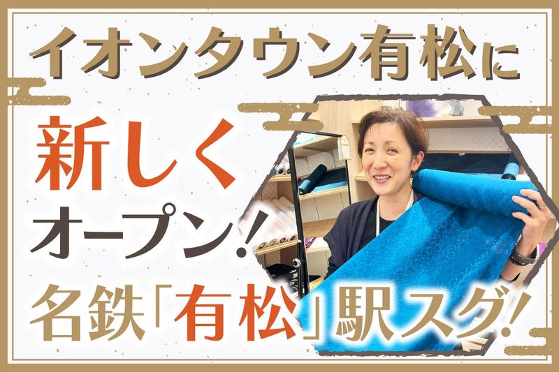 仕事内容 イオンタウン有松にて新店舗オープン! 11月末、グランドオープン予定のため スタートアップメンバーを大募集中✨ ✅年齢不問&未経験OK ✅きものの知識は問いません! ✅転勤なし!長期安定の職場 既存店舗では、主婦さんを中心に 20代からシニア世代まで 幅広い年齢層のスタッフが活躍中です。 「人と話すことが好き」そんな気持ちを そのまま活かして働ける環境です。 ● 年齢を重ねたあなたの魅力 ● 人生経験の深さ ● 柔らかなコミュニケーション力 こうした個性を活かせる職場で、 新しい一歩を踏み出しませんか? ~・~・~・~・~・~・~・~・~・~ 笑顔でスタート!お仕事内容 ~・~・~・~・~・~・~・~・~・~ ・きもの・浴衣・和小物の販売 ・お客様への接客、ご案内など 入社初週は、 まず基本から丁寧にスタート。 ・きもののたたみ方 ・「いらっしゃいませ」の挨拶練習 など 頼れる先輩がそばでサポートするので 未経験の方もまったく心配いりませんよ! ⭐ POINT ⭐ 販売員というより、 「相談役」という表現がぴったりの 接客スタイルです◎ お客様の思いやお悩みに耳を傾け、 一緒にコーディネートを考える時間が この仕事の大きな魅力♪ お客様は40代~70代が中心。 落ち着いた雰囲気の中、 一人ひとりとじっくり向き合えるので 自然と会話も弾みます。 ~・~・~・~・~・~・~・~・~・~ 具体的なお仕事内容をチェック ~・~・~・~・~・~・~・~・~・~ ✨ステップ① お客様のご来店時にはまず笑顔でご挨拶。 「本日はどのようなモノをお探しですか?」 と丁寧にお声がけします。 ✨ステップ② 成人式や普段使いなど、 シーンに合ったご提案をするために、 お客様のお話にじっくり耳を傾けます。 ✨ステップ③ コーディネート&試着のお手伝い♪ 一緒に楽しみながら、 ピッタリの一着を探します。 ✨ステップ④ レジ対応とラッピング。 感謝の気持ちを込めて、 美しく包装してお渡しします。 ✨その他 店内美化・商品の整理整頓。 いつでも気持ちよく過ごして いただける空間づくりも大切です。 和装のご提案を通して、 お客様の日常を少し特別に 彩ることのできる やりがい十分のお仕事です! オープニングのこの機会に、 ぜひ一緒に働きませんか☆彡