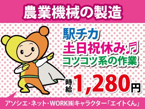 職種補足 【農業機械の製造】お米の収穫機械の板金加工や組立 雇用形態 派遣社員 学歴 学歴不問 面接会のお知らせ 【会場】北上市さくらホールfeat.ツガワ(レッスンルーム1) 【開催】11月27日(木)、12月5日(金)、12月12日(金) 【時間】12:00~15:00 備考 私達は“セカンドキャリア”を一緒に切り開く企業です! 今まで培ってきたスキル・ノウハウを当社で活かしてみませんか? 他にも魅力的なお仕事をたくさんご用意しています! 下記URLよりぜひご覧ください! <URL> https://entori.jp/associe-kitakami お問い合わせ先 アソシエ・ネット・WORK株式会社 〒024-0061 岩手県北上市大通り3-1-1 jtsビル3F TEL:0120-3575-88 管理NO 286-1 社会保険 健康保険あり,厚生年金あり,雇用保険あり,労災保険あり 試用期間 あり 時給1,280円 試用期間14日間(同条件) 喫煙環境 屋内禁煙 担当者 採用担当 受付先名 アソシエ・ネット・WORK株式会社 〒024-0061 岩手県北上市大通り3-1-1 jtsビル3F TEL:0120-3575-88
