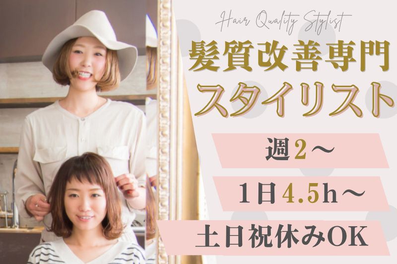 ※美容師免許をお持ちの方※⭐お仕事復帰応援・週2日~ 平日のみ休日のみOK・1日4.5h~ 時短勤務OK・ファッション雑誌で紹介の人気店⭐