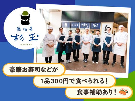 仕事内容 【仕事内容】キッチン中心のお仕事 お寿司を握ったり、天ぷらやポテトサラダなど一品メニューの調理、盛り付けなどをお任せします。料理の経験は全くなしでOK!1つずつ作れるメニューを増やしていきましょう!杉玉には定番のお寿司メニューはもちろん「飲めるサーモン」や「赤海老 他人の子持ち」などなど、味だけではなく見た目やネーミングにもこだわったユニークメニューが多数!自分もお客さまも楽しい気持ちになれるメニューが揃っています。※店舗の状況によっては、ホール業務をお任せする場合もあります <ブランクOK!元杉玉スタッフを積極採用中> 杉玉では大勢の元スタッフが職場復帰しています。 以前に勤務されていた時と比べて 「新しいシステムが入っていたら、ついていけるかな?」 「仕事のやり方、大きく変わっていたらどうしよう。また一から覚えるのは大変そう…」 「辞めてからブランクがあるけど、すぐに勘は戻るかな?」 などの心配もあるかもしれませんが、もちろんイチから始めていきますので 安心して応募くださいね。 新しいマニュアルもばっちりなので、少し働けばすぐに勘も戻るはず♪ 職場復帰しやすい環境です 「大学受験の時に忙しくて退職しちゃったけど、大学生活にも慣れたし、もう一度杉玉に戻りたいな」 「子育ても少し落ち着いてきたし、合間の時間でまた働きたいな」 など、もう一度杉玉で働きたいと思っていただける皆さんを大募集! 自由度の高いシフトで、今の生活環境に合わせた働き方がきっと見つかりますよ。 「当初と同じ店舗で」「新しい店舗で」はじめてみませんか!? 【ココが嬉しい】お得な食事補助あり 勤務日には食事補助として1品300円でお店のメニューが食べられる!多くのスタッフから人気の海鮮丼、刺身定食、天丼など…バリエーション豊かな豪華メニューをリーズナブルな価格で楽しむことができちゃいます(日の仕入れ状況などにより異なる)♪ぜひ勤務日の楽しみのひとつにしてください! 【私たちについて】いま注目の大衆寿司居酒屋 杉玉は、スシローグループが展開している注目のお店。「食べる前から楽しくなれる」をコンセプトにした、大衆寿司居酒屋です。『飲めるサーモン』『極み寿司』など、味はもちろんSNS映えも意識した遊び心満載のメニューが充実!白シャツ×蝶ネクタイ×デニムエプロンのオシャレな制服など、他にも個性あふれる特徴が目白押しなお店です。 【私服OK】お気軽に面接へお越しください♪ ・面接時履歴書の持参不要 ・年齢、経験、もちろん不問!応募者全員面接中! ・お友達と一緒に応募OK(面接は、店舗によっては別になる可能性もあり) ・もちろん面接は私服でOK ・いつでもどこでも受けられる!録画面接も実施中 ■応募後の流れ↓ まずは「応募する」ボタンより気軽にご応募ください! ご応募後は応募受付センターよりメールにてご連絡いたします。 希望面接日の設定と対面・録画面接の選択をお願いします★ ■面接当日の流れ(対面面接の場合)↓ (1)応募した店舗までお越しください。スタッフがご案内します! (2)タブレットをお渡ししますので、希望の働き方や必要事項などの入力をお願いします。 (3)入力が終われば担当者が参ります。難しい質問はありませんので安心ください。 (4)長くても30分程で終了♪採用の場合に限り、7日以内に店舗よりご連絡いたします! ■面接当日の流れ(録画面接の場合)↓ (1)応募受付センターよりお送りしたメールにて録画面接を選択ください。 (2)録画面接用のURLをメールにてお送りさせていただきます。 (3)ログインの上、通勤とシフトに関する簡単な質問など自己紹介動画を撮影ください。 (4)所要時間は15分ほど♪採用の場合に限り、7日以内に店舗よりご連絡いたします! ※不採用の場合は連絡いたしません。ご了承ください。 皆さんと一緒に働ける日を楽しみにしています! もしもわからないことや、確認したいことがあれば応募受付センター(0570-006-628)までお気軽にご連絡ください。 ※【電話受付】10:00~19:00