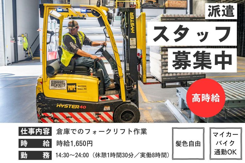 【高時給1650円】週3~OK!フォークリフト作業★髪色自由