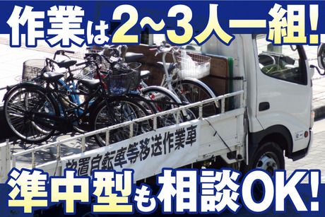 仕事内容 【 仕事内容 】 ◆2~3人1組で放置自転車を撤去するお仕事です。 ◆作業を分担して回収するお仕事なので、体力の負担が少ないお仕事です。 【 仕事内容補足 】 ◆撤去後は保管場所へ自転車を降ろします。 ◆午前1往復、午後1往復となります。 【車種】 ・4t平車両 ・2t平車両 【 転職応援キャンペーン実施中! 】 ★転職希望で来社面接された方 →QUOカード1000円分進呈中! ★お仕事が決定し実際に働くことになった方 →更にQUOカードor電子マネー1000円分進呈! ★転職応援金1万円支給!(規定有) ※当キャンペーンは予告なく終了する場合がございます。予めご了承ください。 【 給与日払い・前払いOK! 】 給料日を待たずに働いた分の一部を受け取り可能! ケータイorパソコンで申請するだけ♪とっても簡単◎ 必要な額をいつでも自由に前払い申請OK! 申請から最短即日でATMから引き出し可能! 「急な出費」でも安心です♪(利用規定有)