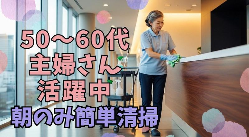 仕事内容 【POINT】 ★早朝6時半~10時or10時半までを選択可! ★交通費無しの方は時給1300円~! ★エレベーター移動OK! ★扶養内勤務OK! ★1か月で8万3200円稼げます! ★駅チカで綺麗なオフィスビルのお掃除 ★京阪・御堂筋線「淀屋橋駅」堺筋線「北浜駅」より徒歩5分&自転車通勤OK ★現場と家の直行直帰となります! - 【仕事内容】 オフィスビルの清掃をお任せ ・入り口や廊下にモップや掃除機かけ ・トイレや洗面のお掃除 ・事務所内清掃(ゴミ回収・バキューム掛け) などをお任せします。 基本は1人でやるお仕事になりますので 黙々と取り組みたい方にはピッタリ! 別フロアへの移動はエレベーターの利用可能! 重たい物を持って階段移動はありません! - 【教育について】 まずは先輩が1つ1つ丁寧にお教えするので 未経験の方も安心してご応募ください。 - 【職場について】 自転車通勤もOKです。綺麗なビルなのでお仕事環境もとても良いですよ。 朝の3時間のみなのでWワークにもぴったり。月収6.2万円以上稼げます。