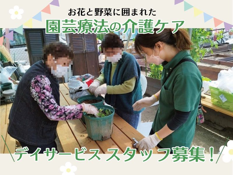 園芸療法を用いたデイサービスで、利用者様の介護ケアやサポートをしてみませんか?この度時給UPしました!!