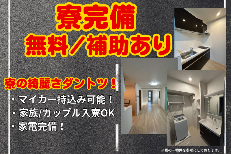 仕事内容 ★おすすめポイント★ ✅ 寮完備・寮費補助(月/3万) 即入寮OK!新生活を安心サポート ✅ 月収40万円以上も可能! しっかり稼げる高収入案件 ✅ 年間休日122日&土日休み → プライベートも充実 ✅職場環境・福利厚生→社員食堂あり(バイキング形式・約100種/70%OFF) 未経験歓迎/トヨタグループ工場での自動車製造業務 \高時給1,900円×月収45万円可/組立・検査など【寮完備&費補助あり】 大手自動車メーカー工場にて、自動車製造に関わる下記いずれかの工程を担当します。 教育体制が整っており、未経験からのスタートが多数活躍中です! 【主な工程】 ▶プレス工程:プレスされた部品の目視チェック・仕分け ▶ボディ溶接工程:機械が自動溶接 → ボタン操作のみ ▶ボディ塗装工程:塗装前後の洗浄・チェック(塗装は機械作業) ▶組立工程:ドア・シート・ハンドル・エンジン・タイヤなどを電動ドライバーで取り付け ※特別な資格・経験は不要。未経験からスタートした先輩が多数活躍中です!