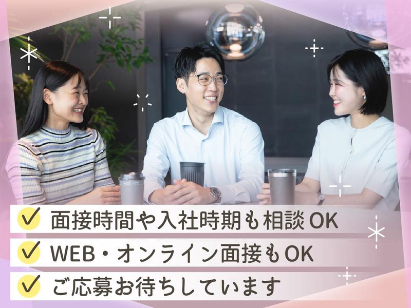 選考プロセス STEP1:書類選考 STEP2:面接1~2回(適正検査あり) STEP3:内定★ ※応募から内定までは2週間以内を予定しています。 ※応募から1ヶ月以内での入社も可能です。 ※Web面接対応可能。 ※平日19時以降の面接もご相談ください。 ※就業中の方からのご応募もお待ちしております。 ■スピード選考 ■スピード採用 ■勤務開始時期調整OK