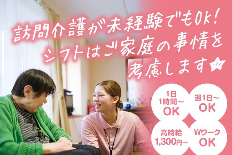 仕事内容 //////ここがポイント!////// ・週1日~、1日1時間~OK! シフトはご家庭やプライベートの ご予定を考慮して組みます★ WワークもOK! ・「平日だけ」や「土日だけ」もOK! 働き方は柔軟に対応します♪ ・業務は1件あたり約1時間で 1件あたり1,300円~の高収入可能! 短い時間の勤務でも しっかり稼げます! 子どもが小さい間は時短のパート、 大きくなったら 正社員に切り替えもOK! ・訪問介護が初めて・・・でもOK! 同行があったり、 先輩もしっかりフォローします! 初任者研修の資格は あるけどブランクがある という方でも大歓迎! //////////////////////////// <具体的なお仕事> 当社の介護サービスを ご利用いただいている 利用者様のご自宅に訪問して、 食事・排泄・入浴介助などの介護や 掃除・洗濯などの家事援助を お願いいたします! ■利用者はどんな方が多い? 訪問先のお客様は高齢者の方が多いです! お客様は基本担当制で、 担当を決める前に事前面談があります! ■報告・申し送り業務はどうやってする? 訪問介護が終了したあとに 利用者様の状況記入や 申し送りをしますが、 スマホで記入して報告するだけなので、 報告業務はとても簡単です♪ ■訪問エリアは? 訪問エリアは金沢市額・四十万方面、 野々市市、白山市、 津幡・内灘・森本・小坂方面で、 直行・直帰OKです! ※特に津幡・内灘・森本・小坂方面で 勤務できる方を積極採用中! 訪問件数は1日1件~OKで、 所要時間は1件あたり、 20分~1時間ほどです! ※訪問する際に使用する車は 社用車もしくは自家用車を 使用していただきます。 (ガソリン代は別途手当あり) ■入社後まずは何する? 入社後は、 まず先輩スタッフと数回同行して、 現場の流れや訪問介護の仕方を 見て覚えていただきます。 その後、1人立ちしていただきますが、 もちろん訪問先で困ったことがあれば、 先輩社員にいつでも頼ってくださいね★ ■どんな人が活躍してる? 現在は、 20~40代の女性スタッフが活躍中です! 訪問介護を未経験で 始めたスタッフも多く、 施設介護とのWワークを している方もいます。 また、シフトの融通が利くので、 Wワークしている方も 働きやすいですよ♪ ■訪問介護サービス「陽だまり」とは 当社では、「利用者様が喜ぶ介護」に こだわっており、 介護も決め決めのやり方ではなく、 利用者様を中心に考えた、 質の良い介護サービスの提供を 行っております。 おかげさまで、 利用者様からも介護の質が良いと 感謝のお言葉をいただくことが多いです。 介護歴10年以上のスタッフも多く、 介護のスキルアップしたい方も ベテランのスタッフが 丁寧に指導いたしますので、 介護スキルの向上もできる環境が 整っております! 「本来したかった、 介護のお仕事がしたい。」 そんな方にはピッタリな職場です!