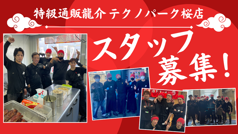仕事内容 ==================== 新たに新店舗の展開を見込み、 ドドーンと”30名規模”で大募集!! ==================== メディアやSNSで話題沸騰! 茨城で大人気のつけ麺店で働きませんか? ●学生・フリーター大歓迎! ●週3~、1日4h~勤務OK! ●美味しいまかないあり! ●食券制なのでレジ対応なし! ●積極的にお仕事に取り組める方歓迎! ●髪色自由&ネイル可※派手すぎなものNG ==================== ◆お仕事内容 ・食券、誘導案内 ・配膳 ・洗物・店内外掃除 ・かんたんな調理補助 食券制なのでレジ対応無し! 綺麗な店内なので配膳もしやすいです◎ ==================== ◆大切なのは「わかりません!」 未経験から始める方は、最初は何が何だか 分からないと思います。 最初から何でもできる人はいないので、 「ここがわかりません!」と言えるかが 重要になってきます。 分からないことをそのまま放置せずに 先輩に聞ける方は、将来大活躍できます! もちろん、お仕事内容はイチから 丁寧に教えますし、 ”何度でも”同じ事を聞いて下さい! 分かりやすく納得するまで お付き合いいたします! ==================== ◆地域から世界へ!ラーメン情熱で着火! 地域と連携し、本店がある土浦市で ラーメンイベントを主催しています。 地域と一緒に業界も茨城も持ち上げています また、今後はベトナムやインドネシア、 マレーシアなどの海外への展開も検討中◎ 現地での修行制度も活用しながら、世界へ 向けて魂の一杯を提供していく予定です! ==================== ◆スタッフインタビュー 全ては特級鶏蕎麦龍介本店から始まりました 正直なところ、創業当初は少人数スタッフで 毎日が本当に忙しくて、長時間働く日も たくさんありました。 でも、あの頃の頑張りがあったからこそ、 今では多くの仲間に囲まれ、 独立を目指すスタッフや、 FCオーナーも続々と増えています。 これからの目標は、もっと多くの方に “龍介”を知ってもらうこと。 でもそれ以上に大切なのは、 「龍介を選んでよかった」と、 心からそう思ってもらえるように 職場環境を整えていくことです! ==================== お読みいただき、ありがとうございます! ご不明な点はお気軽にお問合せ下さい。 株式会社龍介プロジェクトでは、あなたの 情熱・成長を応援します。 ご応募、心よりお待ちしています!