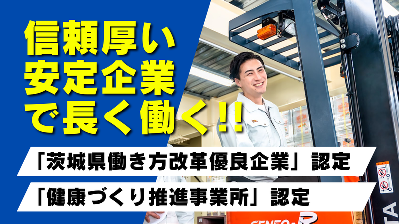 仕事内容 ┃仕事について  ̄ ̄ ̄ ̄ ̄ ̄ ̄ ̄ ̄ ̄ ̄ ̄ ◆出荷リストを見ながらのピッキング作業 ・出荷リストに沿って商品をピッキング します。 ・入社後は、いくつかある班のいずれか に入り、仲間と一緒に作業を進めて いきます。 ・段ボールを使った梱包作業もお願い します。 ※取扱商品は、ゴム製品や機械部品 (シリンダー)などです。 ┃ポイント  ̄ ̄ ̄ ̄ ̄ ̄ ̄ ̄ ̄ ̄ ̄ ̄ ◆安定した企業でコツコツ作業 ・落ち着いた環境で腰を据えて働けます。 ◆地域に根付いた物流会社 ・茨城を中心に、北関東4県+静岡県に 拠点を展開。 ・約20拠点・500名以上のスタッフが 活躍中! ◆長く続けられる職場 ・平均勤続年数は10年以上。 ・「社員が安心して働ける環境づくり」 を大切にしているのが、その理由 かもしれません。 ┃会社紹介  ̄ ̄ ̄ ̄ ̄ ̄ ̄ ̄ ̄ ̄ ̄ ̄ 1967年に創業し、50年以上にわたって物流業を続けてきた十和運送株式会社。 「ハートフルロジスティクス」という言葉を掲げ、ただ荷物を運ぶだけでなく、親身になってお客様のお役に立つことを大切にしています。 ◆地元のお客様からの信頼も厚く、安定して働ける環境が整っています。 ◆今回、正社員スタッフを増員募集! \ 一緒に物流業界を / \ 盛り上げていきませんか? / ┃働きやすさもお墨付き!  ̄ ̄ ̄ ̄ ̄ ̄ ̄ ̄ ̄ ̄ ̄ ̄ ◆茨城県より「働き方改革優良企業」として 認定(2022年10月) ◆全国健康保険協会茨城支部から 「健康づくり推進事業所」として認定 (2022年9月) ┃主要事業  ̄ ̄ ̄ ̄ ̄ ̄ ̄ ̄ ̄ ̄ ̄ ̄ ◆一般貨物自動車運送事業 ◆特別積合貨物運送事業 ◆第一種貨物利用運送事業 ◆倉庫業 ◆派遣業 ◆建築業(とび・土木工事業) 【保有車両】 大型・中型・小型・トラクタなど200台以上