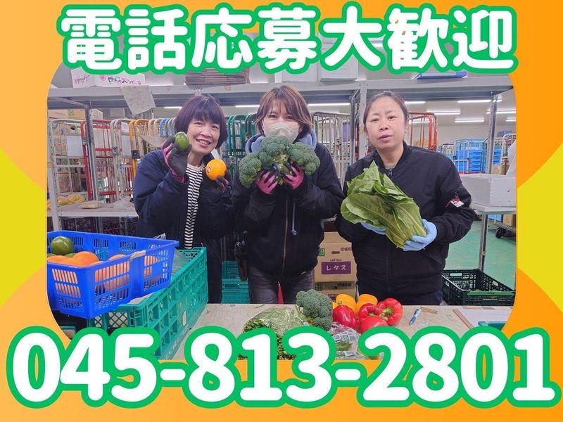 仕事内容 \✨急募✨フルタイム勤務できる方!!/ 豊洲・横浜・太田の主要3市場や 契約産地から新鮮な野菜を仕入れ、 独自ルートで迅速にお届け。 「お客様と新鮮な野菜のつながり」を 大切にしています。 社内はチームワークが良く、 幅広い年代のスタッフが 助け合いながら働いています。 \✨野菜の仕分け・出荷作業スタッフ募集✨/ ▼▽▼ おススメポイント ▼▽▼ ⭐未経験OK! ⭐冷蔵倉庫で安心の作業環境 ⭐車・バイク通勤OK♪(駐車場完備) ⭐フルタイム勤務できる方歓迎 ⭐体を動かして働けます! ⭐ライフスタイルに応じた働き方が可能! ⭐規格外の野菜や果物を持ち帰れます 【✅電話でのご応募大歓迎!!】 少しでも気になった方は 「045-813-2801」まで お気軽にご応募下さい♪ \ こんな方大歓迎です / ✨お野菜に興味のある方 ✨好きな髪色で働きたい! ✨体を動かすことが好き! ✨コツコツ・モクモク作業が好き! ✨ピッキング等、 倉庫内の軽作業経験がある! ✨チームワークを大切にできる方 =============== 【仕事内容】 冷蔵倉庫内にて野菜の仕分けや ピッキング・出荷準備をお任せします。 具体的には… ●飲食店・幼稚園・介護施設向けの 野菜仕分け作業 ●出荷先ごとにリストを確認しながら 野菜を箱詰め ●袋詰め作業をお願いします。 ●箱の運搬など、体を動かす作業あり、 重たい荷物を持ち上げる場面もあります ●個人作業・チーム作業の両方あり ※作業時は動きやすい防寒着をご準備ください。 モクモク作業が好きな方にぴったり◎ 幅広い年代の方が長く働いています。 既存スタッフは未経験スタートが大多数。 先輩がしっかりフォローするのでご安心下さい。 =============== 【アクセス】 ■電車の場合 JR横須賀線「東戸塚駅」より徒歩30分 ■バスの場合 東戸塚駅バス2番乗り場(緑園都市行き) 乗車6分、「公園前」バス停で下車徒歩11分 ■車の場合 「東戸塚駅」より車で10分 戸塚駅、大船駅、保土ヶ谷駅、緑園都市駅など 各方面からのアクセスも便利です! =============== ⭐交通費は規定支給いたします! 「通勤費が心配…」という方も安心! 車・バイク通勤もokなので、 自宅が遠くても通勤ラクラク♪ ⭐求人に関しての不安などお聞かせください! 「給料のこと」 「お休みのこと」 「待遇のこと」 何でも聞いてくださいね。 応募前にお電話でのお問い合わせもOK! あなたの新しい職場になるからこそ、 気がかりな部分は先に解決しておきましょう。 ⭐現在活躍している先輩たちの志望動機 「子育てが落ち着いたから仕事したい」 「コツコツと作業する仕事が好き」 「プライベートと無理なく両立したい」 など、実に様々! もちろん、みんな希望を叶えて 笑顔で活躍しています! =============== 知識も経験も問いませんので、 少しでも興味を持たれた方はぜひご応募ください。