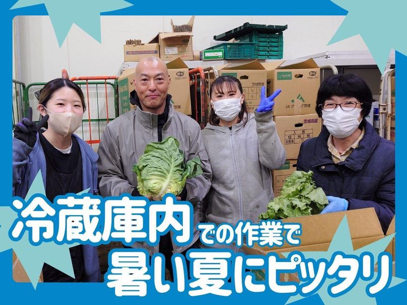 冷蔵倉庫内での野菜仕分け・出荷作業スタッフ