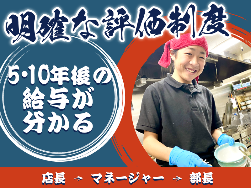 職場環境 【プロフェッショナルを目指せる】 ラーメン作りの楽しさや お客様の笑顔を見れた時の感動は この仕事の特権です。 店づくりの面白さや、 仲間と一緒につくる楽しさを 感じながら働ける環境づくりを徹底! メリハリ良く働ける環境で あなたをお待ちしています。