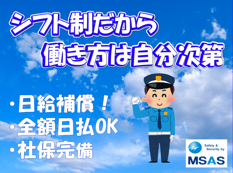 求めている人材 ◆ 働くメンバーの声 ★未経験からスタートしたAさん 研修とチームのフォローのおかげで安心して始められ、今では現場の仕事にやりがいを感じています。 ★週1回のシフト提出で、自分のペースで働くBさん 自由なシフト制でライフスタイルに合わせた働き方が可能。未経験でも安定した収入を得られています。 ★チームワークを大切にしながら働くCさん 仲間と協力しながら進める仕事なので、一人で悩むことなく安心して働けます。 ★交通安全を支える仕事に誇りを持っているDさん 規制業務を通じてドライバーの安全を守れていると実感。社会に貢献できる仕事だと誇りを持っています。 ◆ 注目ポイント ・ 現在在職中の99%が未経験スタート。研修制度が充実しているので安心 ・ シニア・Wワーク希望の方歓迎 ・ 18歳以上(警備業法に基づく) ・ 普通自動車免許があれば尚可(なくてもOK) ・ シフト提出制でプライベートも調整可能 ・ 運転手や車好きな方歓迎。特殊車両と一緒に現場へ ◆ 待遇・環境 【学生・フリーター歓迎】 ・ 学業やイベントに合わせて働けます ・ 髪型自由(金髪不可)、ワンポイントピアス・ネイルOK(業務に支障がない範囲) ・ ひげOK(清潔感を保てる範囲で) 【正社員登用制度あり】 ・ 1~2年の現場経験を積み、ステップアップ可能 ・ 社会人研修あり、基礎からしっかり学べます 【シニアの方も活躍中】 ・ 体力に合わせた現場を担当 ・ 力仕事少なめ&自宅近くの勤務地を優先 ・ 動きの少ない現場もあり、まずは相談ください 【障がい者採用】 ・ 状況に応じた業務を担当。まずはご相談ください 【車・バイク通勤OK】 ・ 勤務地によって可能。詳細はお問い合わせください 年齢の条件と理由:あり(18歳以上(警備業法))