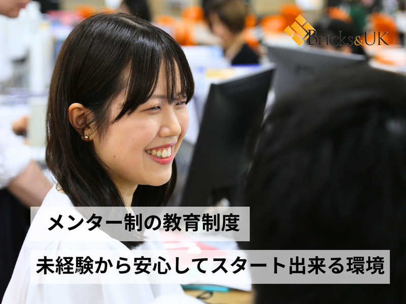 求めている人材 学部学科不問。 入社に必須の資格はございません。 <こんな方がマッチします> Bricks&UKの行動指針 "自己の保身に走らず、チャレンジ(挑戦)するものが豊かになる組織である" Bricks&UKは個々の成長を後押しする社風です。 ◆お客様によりよいサービスを提供するために、新しい知識を取り入れたい、新しい業務に携わりたい・・・ ◆自身の成長の為に、新しいことにチャレンジしたい・・・ 自身の成長のためのやる気や向上心を尊重し、 入社歴に関係なく様々な取り組みに関わり、成長できる環境です。 <約6割強が未経験入社> 歳が近い先輩社員がメンター(教育係)がつきます。 入社後は3ヶ月程度の【OJT制度】による基礎作りから始まります。 未経験でも安心してスタートを切ることが出来ます。
