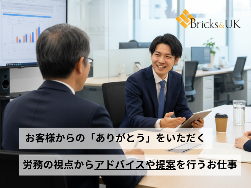 仕事内容 ◆”人”に関する経営パートナー◆ 「初めて従業員を採用したが、何をしたらよいか分からない」 「社内で行っている労務手続きに不安がある」 「労務トラブルの対応で困っている」 上記のような「人」に関する悩みや困りごとを多く抱える経営者のために人事労務の専門家として、 アドバイスや具体的な解決策の提案を行い、企業と従業員が共に幸せになるようにサポートするお仕事です。 <具体的な業務内容> ・給与計算 ・社会保険、雇用保険の手続き ・労働に関する問い合わせ対応 ・助成金の申請 ・労務相談に対するアドバイスや解決策の提案 <入社後の流れ> (1)人事労務の基礎業務の研修(~3ヶ月) 業務マニュアルに沿って、「給与計算」「保険等の手続き」の入力業務。 (2)クライアントの個人担当業務(4ヶ月~) 先輩社員から個人事業主や小規模の企業の引継ぎ(5社前後)。 先輩社員と一緒に業務を進めます。 (3)独り立ち(1年~) 労務のより深い専門業務に取り組むメンバーやクライアントへの コンサルタント業務に多く取り組むメンバーなど様々です。 ゆくゆくは部下の育成やチームのリーダー、 より多くの担当先の労務コンサルタントとしてなど その方の得意に合わせてキャリアステップを進むことが可能です。 <約6割が異業界・異業種からの未経験入社> 入社後は、労務に関する勉強会(Off-JT)や 実際に給与や社会保険手続きなどをしたり、訪問に同行したり(OJT)など 教育制度を整えておりますので安心してスタートできます。 <若手中心に活躍中!> 20代からベテランまで幅広い社員が在籍。 わからないことは先輩にすぐに質問でき、すぐに解決。 未経験でも安心して業務に取り組むことが出来ます。 資格・経験 学部学科不問。 入社に必須の資格はございません。 <約6割強が未経験入社> 歳が近い先輩社員がメンター(教育係)がつきます。 入社後は3ヶ月程度の【OJT制度】による基礎作りから始まります。 未経験でも安心してスタートを切ることが出来ます。
