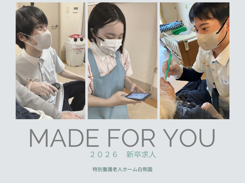 仕事内容 \\⭐この求人のアピールポイント⭐// ~~~~~~~~~~~~~~~~~~~~ ✅科学的介護×チーム支援で成長実感♪ ✅新卒定着率100%(過去3年) ✅平均年齢36.5歳 ✅介護職の平均年収406万円 ✅年間休日120日&有給休暇即日10日付与 ✅就職支度金最大15万円支給! ✅夜勤時も看護師常駐で安心体制◎ ✅先進的な取り組みで専門性を磨ける環境 |◤ 仕事内容 ◢|  ̄ ̄ ̄ ̄ ̄ ̄ ̄ ̄ ̄ ̄ ̄ ̄ ̄ ̄ ̄ ̄ ̄ ̄ ̄ ̄ 特養白熊園・併設ショートステイでの 食事・入浴・排泄など日常生活支援業務 をお願いします。 |◤ 具体的な仕事内容 ◢|  ̄ ̄ ̄ ̄ ̄ ̄ ̄ ̄ ̄ ̄ ̄ ̄ ̄ ̄ ̄ ̄ ̄ ̄ ̄ ̄ ご利用者様の ●食事 ●入浴 ●排泄 など日常生活の支援 「ノーリフティングケア」や「ICT導入」 「誤嚥性肺炎ゼロ」など先進的な取り組みを 積極的に実施しています。 ✨個別ケアを実践しながら専門性を 高められる環境を整えています。 ✨チーム体制が充実しており、夜間も 看護師が常駐しているため、介護職員の 負担を軽減。変化を恐れず挑戦し続ける 職場風土があり、科学的な介護とチーム での支援により成長を実感できます! |◤ 社会福祉法人白熊会について◢|  ̄ ̄ ̄ ̄ ̄ ̄ ̄ ̄ ̄ ̄ ̄ ̄ ̄ ̄ ̄ ̄ ̄ ̄ ̄ ̄ 私たちは福岡市城南区に拠点を置き、 特別養護老人ホーム白熊園をはじめ様々な 介護サービスを展開している 社会福祉法人です。 「ホスピタリティー」「ボールド」 「プロフェッショナル」を法人バリューに 掲げており、利用者様はもちろん、特に 仲間に対する思いやりの心を最も重要な 価値観として大切にしています。 当法人では資格取得支援制度やケアマネ更新 研修支援制度を用意しており、 キャリアアップをサポート。 評価制度も充実しており、努力が適切に 評価される仕組みを導入しています。