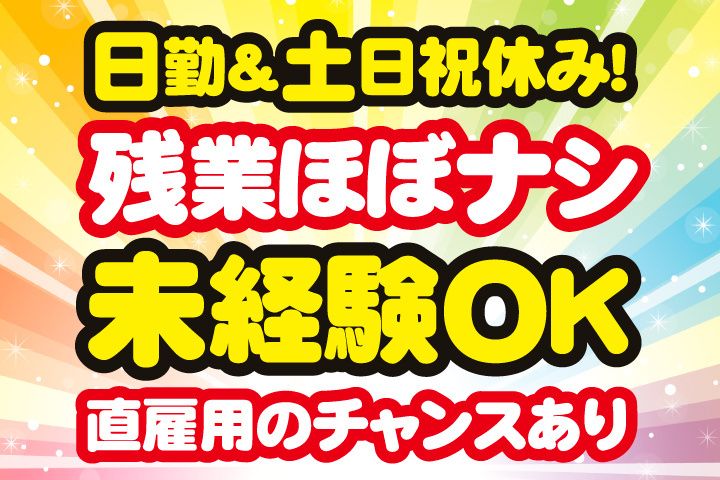 ★人気の日勤&土日祝休み ★メーカー直雇用のチャンスあり ★残業ほぼなしでメリハリがつけられる