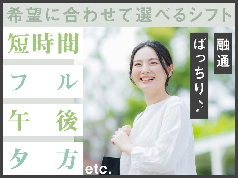 職場環境 \経験・スキル不要!学歴不問!/ 20代・30代・40代・50代・60代の 幅広い年代の男女が活躍中! 喫煙所:なし(敷地内全て禁煙)