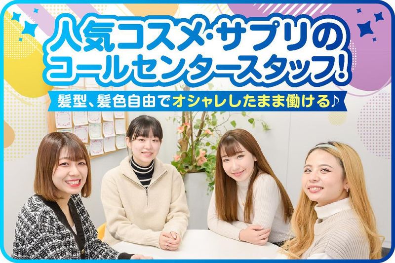求めている人材 家事や育児と両立しながら働きたい 扶養範囲内で無理なく働きたい 女性が活躍中!20代~60代まで幅広く活躍中! ✅学歴不問・長期歓迎! ✅未経験者歓迎・ブランクOK ✅大学生歓迎・フリーター歓迎 ✅主婦・主夫歓迎、扶養内勤務OK ✅髪型・髪色自由でオシャレ◎ ◆こんな方が活躍してます◆ 一般事務、販売、営業経験者や カスタマーサポート、コールセンターでの テレアポの経験者など様々な バックグラウンドの方が活躍しています! ◆スタッフインタビュー◆ ▌職場の雰囲気を教えてください  ̄ ̄ ̄ ̄ ̄ ̄ ̄ ̄ ̄ ̄ ̄ ̄ ̄ ̄ ̄ ̄ ̄ 「家事や育児の合間でも、 みんなが温かく迎えてくれて 安心できる職場です。」(30代女性) 「同じ主婦仲間も多く、 子どものことも理解してくれるので 心強いです。」(40代女性) 「休憩時間は家庭の話や レシピの話で盛り上がったり、 ほっとできる時間です♪」(50代女性) 「急なお休みやシフト変更にも 柔軟に対応してくれるので とても助かっています。」(30代女性) ▌職場の“良いところ”はどこですか?  ̄ ̄ ̄ ̄ ̄ ̄ ̄ ̄ ̄ ̄ ̄ ̄ ̄ ̄ ̄ ̄ ̄ 「家庭や子どもの予定を優先できる シフト調整が本当にありがたいです。」 (40代女性) 「未経験から始めましたが、 丁寧な研修と先輩のフォローで 安心して働けます。」(30代女性) 「同年代の仲間が多く、 気軽に相談できる雰囲気があります。」 (50代女性) ✅柔軟なシフト!(・ᴗ・)/ 1日3時間~OKだから、 家事や育児の合間にも働けます♪ 「扶養内で無理なく」 「家族の予定に合わせたい」 「午前は家事、午後はお仕事」 「急な用事にも対応してほしい」 などの希望にも柔軟に対応◎ あなたの生活リズムに ぴったりの働き方が見つかります! ✅人気コスメやサプリを試せる! 取り扱うのは、よく見かける なじみのある商品ばかりです。 一部の商品は実際に試せるので、 使い心地を知ったうえで 自信を持ってご案内できます♪ さらに、気に入った商品があれば 社員割引でお得に 購入することもできちゃいます!