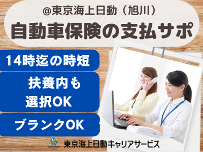 仕事の内容 \実働4hだけ!14時までの時短/ ◆ブランクOK!サポート業務メイン *損害部門はじめての方もゼヒご応募ください♪ 【基本情報】 雇用形態:派遣社員 雇用期間:長期(3カ月以上) └26年1月~開始日相談可能 就業時間:9:00~14:00(休憩60分) *扶養内のご相談もお気軽にどうぞ 【必須条件】 ◆損保事務のご経験がある方 ◆パソコン:基本操作(入力~修正) 【お仕事内容】 ◆自動車保険の支払いサポート ・電話対応 ・データ入力 ・書類整理 ・修理工場などへの連絡 ・ファイリング ・書類発送や郵便物対応など 【環境面等】 @旭川駅から徒歩圏内 ・30代・40代・50代の多い職場 ・子育てに理解ある主婦・主夫活躍中 ・ランチタイムは休憩スペース利用OK └お弁当持参OKです ・オフィスカジュアル内で服装自由 【福利厚生等】 ・扶養内OK/社会保険完備 ・禁煙オフィス!煙苦手な方も安心 ・平日のみOK!土日祝休み ・年間休日120日以上&お休み相談可 └有給休暇、年末年始休暇など ○●ご応募検討中の方へ●○ ・時短で月10万~!損保のご経験いかして、お子様が学校に行っている間に働けます。少しでも気になった方、お気軽にご応募ください! ○●嬉しいPOINTたくさん!●○ 履歴書不要!開始日相談ください/ブランクOK!主婦・主夫活躍中/1日4時間以内OK!14時迄の時短/残業月5時間以内!基本定時であがれます