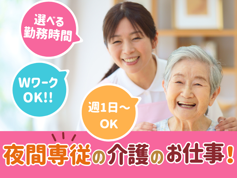 仕事内容 \夜勤専門の介護スタッフさん募集/ 2025年5月に新規オープンしたばかりのピカピカ施設で 一緒にお仕事しませんか? …………………………………………………… ■ 週1日~の勤務もOK …………………………………………………… ■ 選べる夜勤時間(ショート夜勤もあり!) …………………………………………………… ■ WワークOK! …………………………………………………… 《お仕事について》 入居定員52名の住宅型有料老人ホームで、利用者さま一人ひとりに寄り添うケアをお任せします! 》夜間の静かな時間帯でも、あなたの気配が安心感につながります L 定期的にお部屋を見回り、安全を確認 L 寝苦しさを感じないように、適切なタイミングで姿勢を調整(体位変換) 》生活の基本を支える介助 L お食事のサポート L 入浴や排せつの補助 \ブランク5年の期間を経て、働いているスタッフに聞いてみました♪/ Q:初日はどんな感じですか? A:めちゃくちゃ緊張すると思いますが大丈夫! 私も最初はドキドキでしたが、先輩とペアで動くので「横についている安心感」がありますよ! Q:仕事ってすぐ覚えられますか? A:経験者ならすぐ慣れる人もいますけど、未経験なら1ヶ月くらいで自然と体が覚えてきます!焦らず一歩ずつで大丈夫です☆ Q:オリエンテーションってどんな雰囲気ですか? A:学校の授業みたいな堅苦しい感じじゃなくて、「これ知ってる?」ってクイズ形式で教えてくれることもあって、和やかで楽しいですよ♪ Q:夜勤は大変ですか? A:看護師さんと一緒なので安心です! 医療のことは全部任せられるので、私たちは介護に集中できます☆ Q:利用者さんとの関わり方って難しいですか? A:最初は緊張するけど、挨拶や笑顔から始めれば自然と仲良くなれます! お話し好きな方が多いので、逆に楽しくなっちゃいますよ♪ Q:わからないことがあったらどうしたらいいですか? A:その場で聞いてもらって大丈夫ですよ! 「また聞いてるな~」なんて思う先輩は誰もいませんよ♪ 私もめちゃくちゃ質問して乗り越えました!