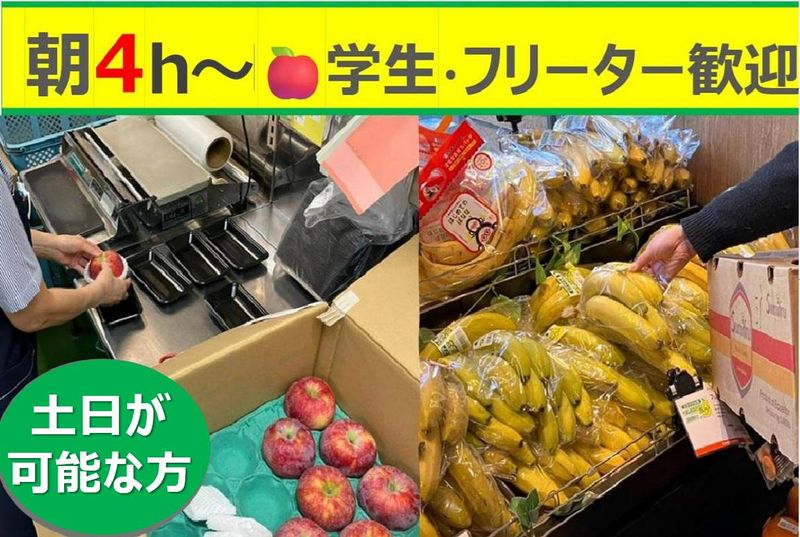 求めている人材 ✅未経験OK! 学生・フリーター、パート 皆さま歓迎 野菜・果物に詳しくなくても大丈夫 ◎コツコツした仕事が好きな方歓迎 ※10Kg位の段ボール箱を移動したり 持ち運ぶこともあります。 ◎流通加工、仕分けなどの仕事や スーパー・コンビニの経験も大歓迎! <こんな方におススメ> ◆短時間で効率よく働きたい方 ◆安定して働きたい方 ◆家事、学校と両立したい方