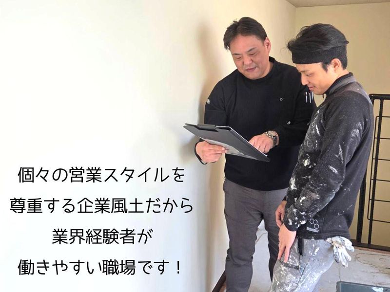 求めている人材 ■求める人物像 未経験者大歓迎!リフォームの営業職に興味がある全ての方を歓迎します!リフォームの営業経験がある方は経験者として月給35万円以上をご提示します。全くの未経験者も月給26万円~のスタートです! ■歓迎条件 ・リフォーム業界での営業経験をお持ちの方 ・住宅、不動産、建築関連の業界経験がある方 ・既存顧客との関係づくりや、紹介・口コミを増やしてきた経験がある方 ・数字だけを追う営業よりも信頼を積み重ねる営業がしたい方 ■こんな人に向いています ・飛び込みやテレアポ中心の営業に疲れてしまった方 ・価格競争ではなく、価値で選ばれる営業がしたい方 ・お客様から感謝される仕事に、ちゃんとやりがいを感じたい方 ・売上だけでなく、信頼の積み重ねで評価される環境で働きたい方 ・これからの会社を一緒につくっていくフェーズに関わりたい方