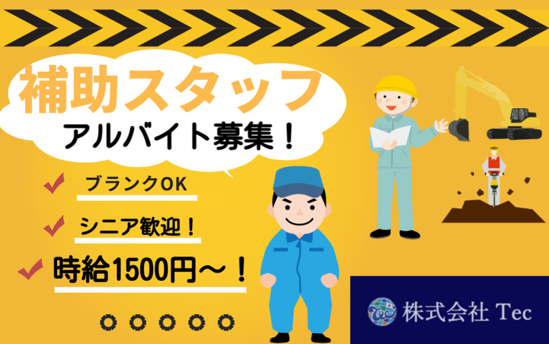 仕事内容 ー・ー・ー【アピールポイント】ー・ー・ー ✨学歴・年齢不問!シニアも歓迎! ✨未経験者歓迎!丁寧な指導で安心! ✨高時給1500円~1800円! ✨正社員登用あり! ✨車通勤OK!無料駐車場完備! ー・ー・ー・ー・ー・ー・ー・ー・ー・ー・ ■仕事内容 ・・・・・・・・・・・・・・・・・・・・・・・・・・・・・・・・・・*・・・ 配管工事補助スタッフとして 管工事・土木工事・舗装工事などの 公共工事をサポートしていただきます! 現場での作業を補助し、 チームの一員としてプロジェクトを 進めていただきます! ⭐未経験でも安心のサポート体制⭐ ー 未経験の方でも安心してスタートできるよう 先輩スタッフが丁寧に指導します◎ 現場での作業に必要な知識やスキルを 一から学べる環境が整っています! ⭐経験者の方も大歓迎⭐ ー これまでの経験を活かして、 即戦力として活躍していただけます! スキルに応じた業務をお任せしますので、 さらなるスキルアップを目指せます! 「現場は引退したけどもう少し活躍したい・・・」 ここでもう少し活躍してみませんか? ⭐正社員登用あり⭐ ー これから正社員を目指したい方を 応援しています! まずは、アルバイトとして経験を積んで 正社員へとキャリアアップが可能です! ⭐勤務時間・日数はご相談ください⭐ ー 平日のみの勤務も相談可能! ライフスタイルに合わせて働けます◎ また、GW・夏季・年末年始休暇もあり、 プライベートとの両立がしやすいです♪ 新しい環境でチャレンジしたい方の ご応募をお待ちしております!