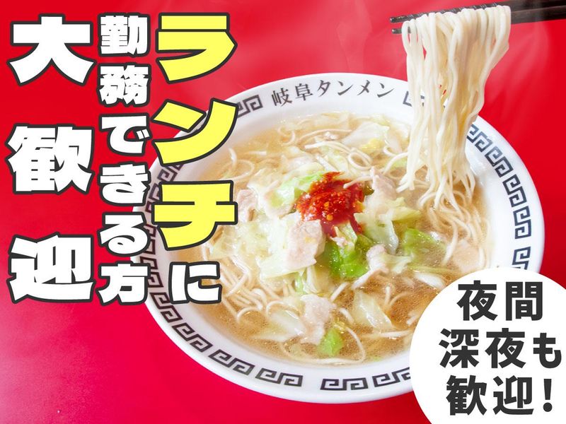 仕事内容 ●・。★─────────────────────────────── ▼▼ 岐阜タンメンで働く魅力! ▼▼ ✨週1日~OKでシフト融通が聞く! ✨メニューが少なくマニュアル完備で未経験でも安心! ✨間違えても優しくフォロー!次に活かせばOK♪ ✨人が良すぎて辞められない♪ ─────────────────────────────────★。・● 【仕事内容】 ✅注文取り(トッピングや辛さ、麺の硬さを伺います) ✅簡単な調理(最新の機械を利用!ケガ・やけどの心配なし!包丁を使う事も99%なし!) ✅洗い物 ✅簡単な拭き掃除 ✅閉店業務(翌日の食材の解凍、床掃除、調理器具の洗浄) ―――――――――――――――――― ❖わかりやすい動画マニュアルのおかげで初アルバイトでも安心! ❖機械はスイッチの場所や手順を覚えるだけ! ❖「へいっ!いらっしゃい!」の声がお店に響き渡る、明るく元気な職場です! ❖常連さんも多いですよ! ―――――――――――――――――――――――――――――――――――― ⭐YouTubeチャンネルも開設⭐ https://www.youtube.com/channel/UCuhhYLNvYMVaibUxHg_cncg ⭐インスタ更新中!⭐ もっとお店の雰囲気が見てみたい…という方は ぜひInstagramのアカウントを見てみてください! @gifu_tanmen で検索をお願いします♪ 新商品の紹介など、ほぼ毎日更新中です! ▄▀▄▀▄▀▄▀▄▀▄▀▄▀▄▀▄ WEB面接も実施中! ご希望の方はお気軽にどうぞ! ▄▀▄▀▄▀▄▀▄▀▄▀▄▀▄▀▄