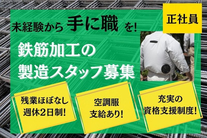 【雇用形態】 正社員 【契約期間】 正社員のため無期雇用 【その他】 建築現場での鉄筋組立スタッフは、正社員としての勤務が可能です。 土日祝休みの現場もあり、希望休も出せるので安定した生活リズムを保ちながら働くことができます。 ワークライフバランスにも適した仕事です。 鉄筋の組み立ては建築に重要な基礎部分をしっかりと作業して、未経験の方は軽作業からスタートできるため、建築の知識がない方でも始めやすい環境です。