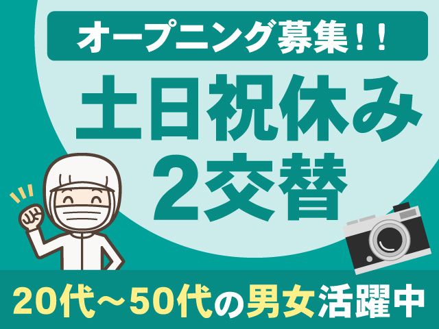 仕事内容 <注目ポイント> ・3月末までの短期のお仕事 ・求人枠が少ないため早いもの勝ち案件! ・日勤帯での交替勤務&土日祝休み ・高時給で高収入可 ・工場見学OK ・未経験OK ・教育制度も充実 ・20代~40代の女性活躍中 ・残業は月に10~20h程度 ・日勤帯のみの勤務も相談可能 <お仕事詳細> キズのチェック検査スタッフ 医薬品工場で、注射剤が入っているビンや、箱の目視検査をするお仕事です。 異物が混入していないか、箱にキズや凹みが無いかを確認していただきます。 その他、薬瓶の機械への供給、回収、シール貼りや箱詰め作業もあります。 土日祝休みのお仕事なので、小さなお子様がいる主婦(夫)の方も働きやすい! 製造未経験の方も丁寧に指導しますのでご安心してください! 休憩室に便利なコンビニ自動販売機を完備! 専用アプリで美味しいお弁当(日替わり)の注文も可能です。忙しい朝にも安心!