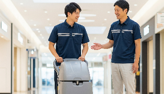 ショッピングセンター内の清掃スタッフ