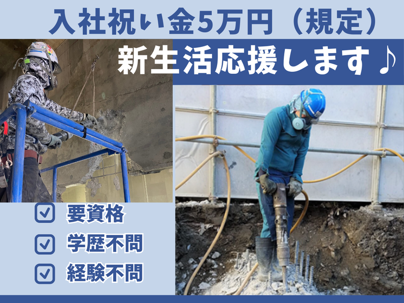仕事内容 ✨新着求人✨ ====当社のアピールポイント==== ✅即入居OKの借り上げ社宅を完備しています! ⇒単身者用、カップル用、ファミリー用 など敷金・礼金など不要で入居可能! しかも… 家具家電付き&光熱費は当社負担! 都内に格安で住めます♪ ✅入社祝い金5万円&勤続1年後には さらに20万円支給します!(規定有) ✅現場仕事が初めての方も大歓迎です! ⇒学歴・経験など一切不問! 大切なのは、「意欲」や「やる気」です! ✅日払い・週払いもOK♪(規定有) ✅髪型・髪色・ピアス・ヒゲ自由♪ ⭐お仕事内容について⭐ あらゆる建物を対象とした 内装解体工事の重機オペレーターを お任せします。 内装解体の工事は、 特にテナントなどの賃貸物件で 多く行ないます。 退去時、元の状態へ戻すことを 目的に、内装部分のみを解体します。 ⭐新生活応援!借り上げ社宅あり⭐ 未経験の方や無資格の方も応援!! 引越時の敷金・礼金は会社負担 入居後の光熱費も会社が負担します! 社員寮ではなく、賃貸物件の1部屋なので 同じマンションに先輩がいて、、、 なんて事もありません! プライベートもしっかり確保できます! ✨株式会社ケイ・エス・ケイについて✨ おかげさまで多数のご依頼に恵まれ、 業績も好調を維持しております。 そこで、今後さらに事業を拡大すべく、 スタッフの求人を行なっています。 入社後はそれぞれの現場に携わって 頂きます。 飲み会やBBQ、忘年会といった 社内行事を通して、普段から親睦を 深めています。新しい仲間として 弊社に加わって下さる事を、 スタッフ一同心より楽しみにしています!