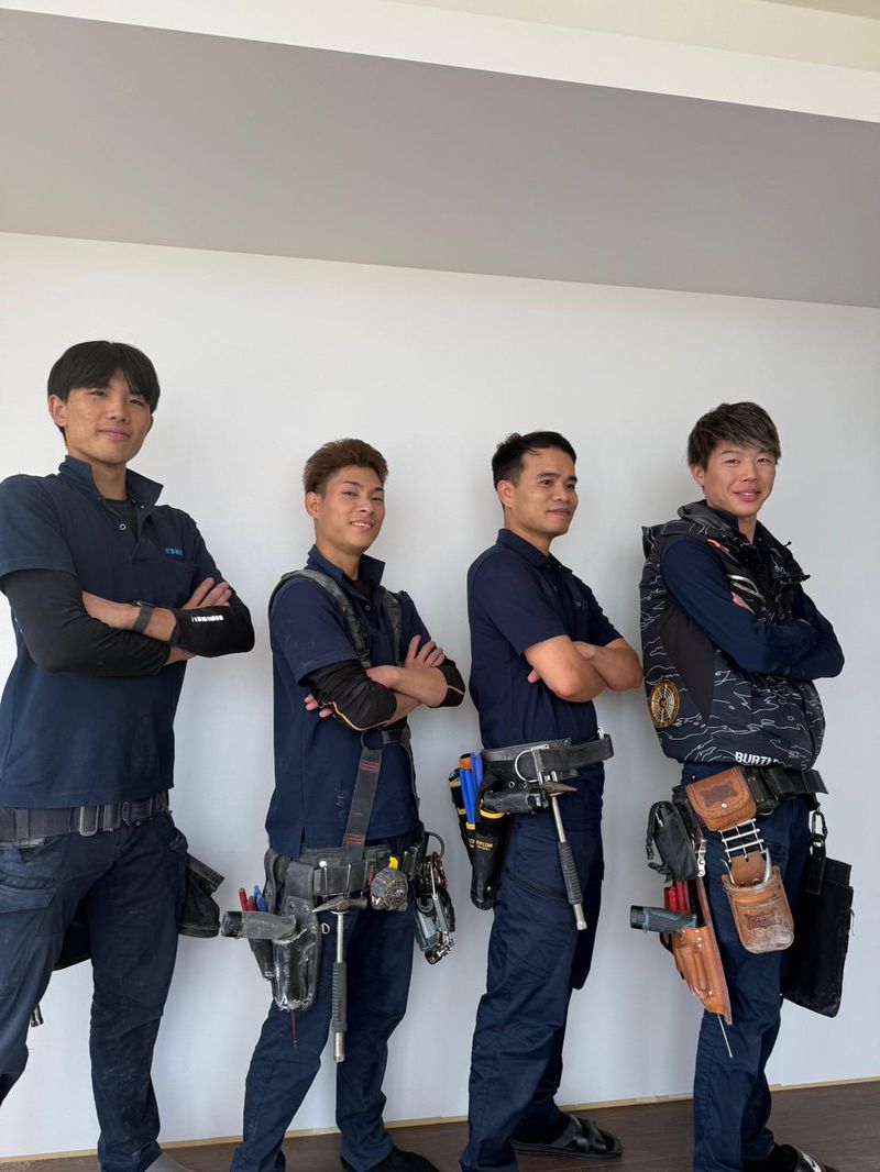 職場環境 在籍メンバーは20〜40代中心で、 前職もさまざま。 施工経験者だけでなく、 異業種からの転職者も在籍中。 社内は少人数体制で、 代表や先輩との距離も近く、 風通しの良さが魅力です。
