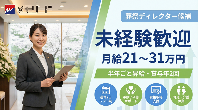 仕事内容 葬儀・セレモニー全体を支える 葬祭ディレクターとしての業務全般を担当します。 メインとなるのは、 ご遺族との打ち合わせや葬儀内容のご提案、 それに伴う見積作成・進行準備などの調整業務です。 式の進行だけでなく、 「どんなお別れにしたいか」を丁寧に伺い、 内容を形にしていく役割を担います。 【主な業務内容】 ・ご遺族との打ち合わせ(内容・日程・流れの確認) ・葬儀プランのご提案、見積書の作成 ・式当日までの準備・各種手配 ・葬儀当日の進行サポート ・清算・事務処理、データ入力 ・電話・メール対応、関係部署との連携 など ⏩ 一つの業務に特化するのではなく ⏩ 打ち合わせ〜見積〜進行まで幅広く関わります ⏩ 専門知識は入社後に段階的に習得できます この仕事のポイント ✅ ご遺族と向き合う「打ち合わせ」が仕事の中心 ✅ マニュアルだけではなく、考えて動く仕事 ✅ 見積作成・進行・調整などオールマイティに活躍 ✅ 一件一件違うため、単調になりにくい ✅ チーム制なので一人で抱え込まない ✅ 経験を積むほど対応力・収入アップにつながる