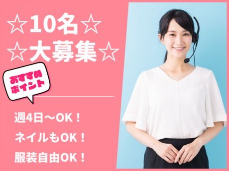 仕事内容 \ここがポイント/ ★10名の大量募集!一緒に始める仲間がいて安心☆ ★週4日~OK!ライフスタイルに合わせて働ける♪ ★服装・髪色・ネイル自由!自分らしく働ける◎ *・。・。*・。・。*・。・。* <仕事内容> \☆通販商品の注文・問合わせ対応スタッフ☆/ ・通販商品の注文受付やお問合わせ対応(会員様対応がメイン) ・コールセンターでの電話対応業務 ★しっかり研修があるから未経験でも安心! <研修内容> 1日目:会社やツールの説明 2日目:業務全体の説明+座学(動画・資料使用) 3日目:ロープレ&振り返り 4日目以降:実践的なロープレでスキル習得 丁寧なサポート体制でコールセンターデビューを応援します! ★未経験歓迎!ネイルOK♪ ★入社後2週間の充実研修あり ★5~10名採用予定!同期と一緒にスタート◎ *・。・。*・。・。*・。・。*