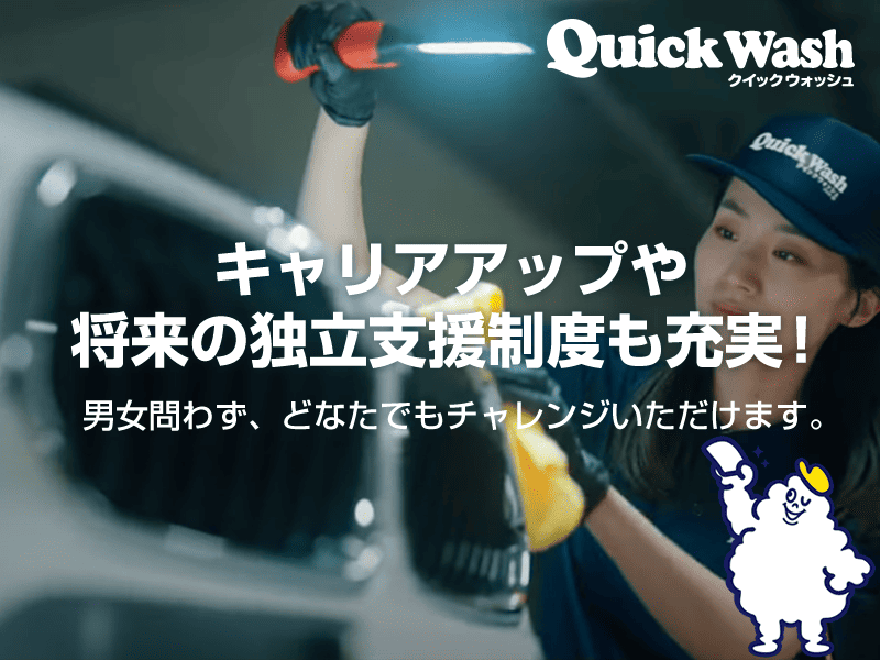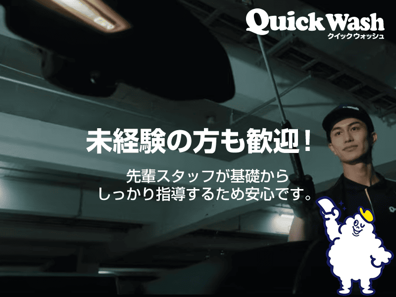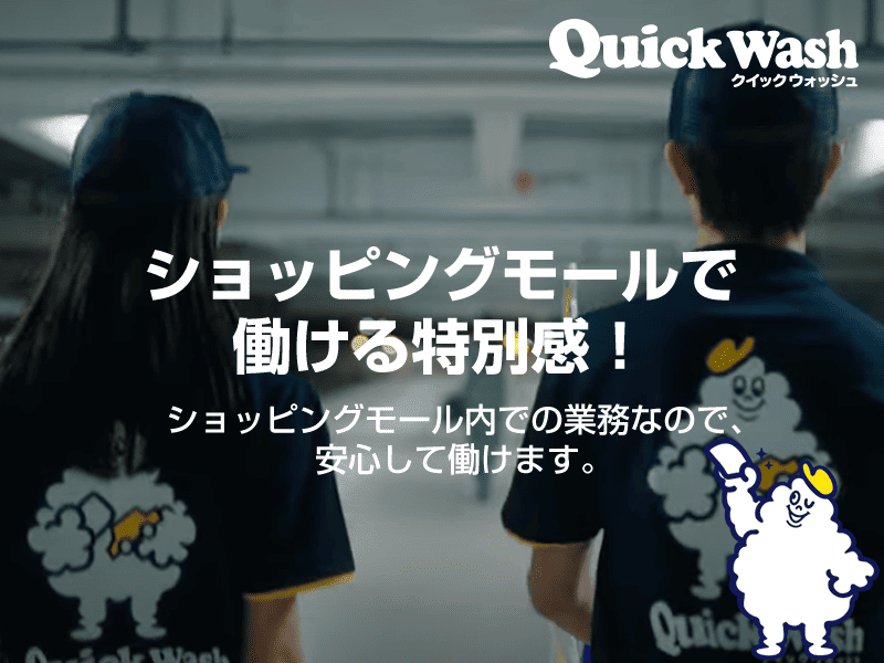 仕事内容 ―――――――――――――――――――― 全国展開中のクイックウォッシュで アルバイトとして安定して働きませんか? ―――――――――――――――――――― 【お仕事内容】 お客様がお買い物、映画鑑賞等で お車を立体駐車場に停めている間の スキマ時間にて手洗い洗車を行うサービスとなります。 【具体的な流れ】 ✅掃除機かけ(車内清掃) ✅水拭き・乾拭き(洗車) ※基本、全て手洗い作業になります! ✅作業補助 ✅受付対応、車の誘導 など 暗い中での作業となる為、 まずは作業のスピードより、 拭き残しがないよう 丁寧な作業が大切です! 【アピールポイント】 • 土日祝・大型連休に勤務できる方、大歓迎! シフトは1週間ごとの作成。勤務の相談もしやすく、安定して稼ぎたい方に最適です。 • 未経験からスタートOK 専門スキルは不要です。丁寧な研修でサポートします。 • 車好き・洗車好きにピッタリ 最新の車に触れられる機会もあり、達成感のある仕事です。 【求める人材】 • 土日祝やGW、お盆、年末年始に勤務可能な方(優遇) • 体を動かすことが好きな方 • コツコツ丁寧な作業が得意な方 ―――――――――――――――――――― \◆未経験歓迎◆/ 専門的なスキルは不要! 丁寧な研修でしっかりサポートします。 洗車好き!車好き!キレイ好き!に ピッタリな業務内容です! 分からないことは 周りのスタッフに気軽に聞いてください。 お気軽にご応募ください✨