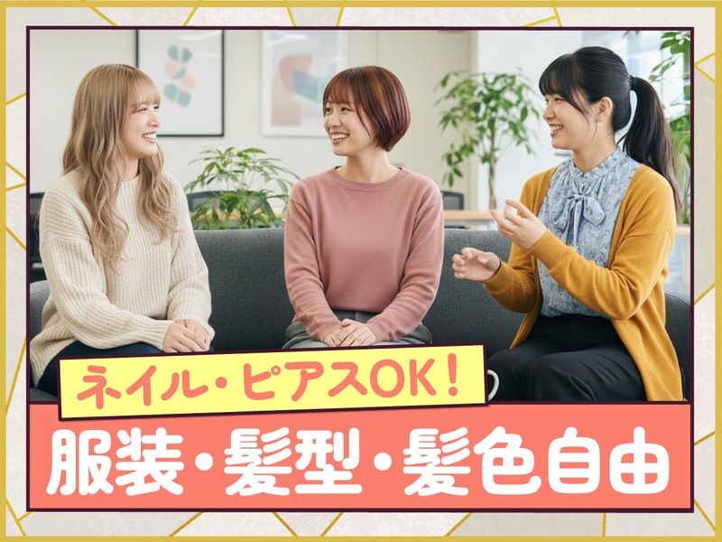 【保険制度】 雇用保険、労災保険、健康保険、厚生年金 待遇・福利厚生 【福利厚生】 ・社会保険完備 ・介護休暇 ・無期雇用制度 ・正社員登用制度あり ・管理職登用制度あり ・時間外手当(1分単位) ・産前産後・育児休暇 ・病児保育制度あり ・有給休暇 ・交通費規定支給(5万円迄/月) ・駐車場手当規定支給(月1万5000円) ・社内無料Wi-Fi ・服装・髪型・髪色自由、ネイルOK ※その他福利厚生多数(各種割引等) ※一部就業規則による ※各条件あり