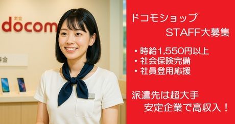 【未経験大歓迎】将来を見据えて安定して働く!ドコモショップのお仕事!ノルマ・時給ダウン無し!