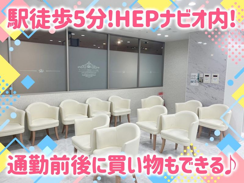 仕事内容 ★院長含めスタッフ全員女性! ★残業ほぼなく時間きっちり! ★有給取得率ほぼ100%! ★駅チカ◎HEPナビオ内で勤務後買い物も♪ ▼具体的なお仕事内容は・・・ - 受付・会計・レセプト業務 シュライバー業務(電子カルテの代行入力や診療補助等) などをお任せします。 今回はクリニック受付経験者募集です! 電子カルテ使用経験があればOK! 経験が浅い方、ブランクがある方も 丁寧にお教えするのでご安心ください◎ / 主婦さんが多数活躍中♪ 働きやすいPOINTをご紹介★ \ ✨残業ほぼなし*有給取得も可能! ――――――――――――――― 残業はほとんどないので家庭の時間や プライベートの時間も大切にしながら 働けます◎ 有給取得率はほぼ100%で 院長も取得を推奨しているので スタッフみんな自由に 休み希望を出しています! ✨人間関係では悩まない!仲の良いスタッフ ―――――――――――――――――― スタッフ全体では20代~50代が 受付では20代~30代の方が中心となり 活躍しています◎ お昼休みはご飯を食べたり、昼寝をしたり 皆さん自由に過ごしています! スタッフ同士は仲が良く 数ヶ月に1回は食事会などもあります♪ にぎやかで楽しい雰囲気のスタッフばかり なので新人さんもすぐに馴染めると思います◎ ✨主婦さん歓喜の好立地! ―――――――――――――――――― 駅チカでHEPナビオ内にあるため 通勤しやすい立地であることに加え 周辺にはスーパーや薬局、 コンビニなどもあるので 帰宅途中にお買物も済ませられます!