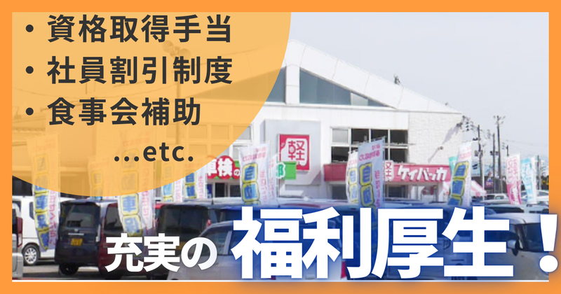 仕事内容 【川内自動車のおすすめポイント】 ✅若手社員が活躍中!ほぼ全員が未経験からスタート ✅研修制度の充実で、未経験者でも半年で1人前に! ✅クルマの購入から整備まで、福利厚生で大幅割引! ✅サービス業ですが年末休暇はしっかり取れます! ✅残業時間は月平均1時間未満でプライベートとの両立可能! ✅新潟県売上No.1の軽自動車量販店で安心♪ ✅新潟全域に店舗あり!最寄りのお店で働けて通勤楽々♪ ==================== TVCMでお馴染み!ケイバッカの会社です! ==================== 【このようなお悩みはありませんか?】 ・残業や休日の呼び出しがあり、気が休まらない… ・お客さまと話す仕事は好きだけど、ノルマの厳しい営業は嫌だ… ・今の会社で働き続けても、未来が見えない… ・マニュアルや研修に沿って、自分のペースで成長できる環境で働きたい! ・若手社員が多く、明るく、人間関係のストレスのない環境で働きたい! そのお悩み、川内自動車が解決します! 新潟県No.1の軽自動車専門店の『ケイバッカ』で 自動車の販売スタッフとして働きませんか? 20代、30代の若手メンバーが多く、男女・年齢問わず働きやすい環境です! 【具体的な仕事内容】 ✨自動車販売スタッフ 新車や未使用車・中古車の販売、接客業務をお願いします。 お客様との会話の中から要望や家族環境などを汲み取り、「これだ!」という1台をご提案。 お客様とのご縁を大切にし、お車を通して一生のお付き合いをしていけるお仕事です。 ✨未経験者大歓迎! 当社の販売スタッフの9割は新卒入社の社員もしくは他業界からの転職した社員なので、 販売や接客、営業の経験は不問です! 先輩がやさしく指導してくれますし、研修も充実しているので、 基本的には半年以内に独り立ちの一人前になれます! 【社員の声】 T・Eさん(男性/30代) 元々、自動車の知識は全くありませんでした。 先輩の助けを借りながら、メモを取って繰り返しながら学んだことによって、 今では月30代以上の自動車の販売に携わることができるようになりました! M・Gさん(女性/20代) 先輩方は面倒見がよく、熱心に指導してくれる方が多いです! 知識や提案に自信がなくても、素直に学ぶ姿勢があればどなたでも活躍できる環境です! 子育てのための時短制度や休暇制度も充実しており、働きやすい環境でもあります!