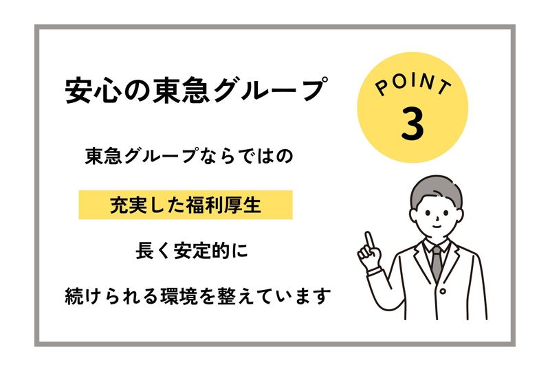 【保険制度】 雇用保険、労災保険、健康保険、厚生年金 待遇・福利厚生 【福利厚生】 ・交通費全額支給 ・社会保険完備 ・東急百貨店で使用できる割引券あり ・社員登用制度あり (契約社員に登用されたのち、 正社員への登用制度あり)