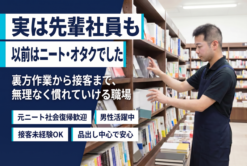 仕事内容 【この求人のポイント】 ✅未経験歓迎。マニュアル完備で安心スタート ✅品出し・陳列などコツコツ作業が中心 ✅落ち着いた店内で自分のペースで働ける環境 ✅社会保険・有給・賞与など長く続けやすい制度あり ⇒いきなり難しいことをお任せすることはありません。 できる作業から少しずつ慣れていければ大丈夫です。 【会社について】 利根書店(プリマベーラ)は、漫画・書籍・メディア商品を扱う地域密着型の店舗です。 落ち着いた雰囲気の中で、無理なく働ける環境づくりを大切にしており、 未経験の方や久しぶりのお仕事の方でも、安心してスタートできる体制を整えています。 【当社の特徴】 ・従業員割引制度あり(販売・買取・レンタルなど) ・アルバイト賞与 年3回(実績あり)/時給アップ 年2回 ・社会保険完備/社員登用あり ・未経験スタートのスタッフが多数在籍 ・長く働くスタッフが多い安定した職場 【仕事内容】 商品品出し・陳列などの売場作業を中心にお任せします。 作業は決まった手順に沿って進めるため、未経験でも安心です。 まずはシンプルな業務からスタートし、無理のないペースで慣れていけます。 接客もありますが、落ち着いた店内のため、 慌ただしい対応や負担の大きい接客は少なめです。 【具体的には】 ・入荷商品の品出し・陳列・補充 ・棚のチェック・整理(在庫管理) ・売場の清掃・整頓 ・POPの貼り替え ・日報入力(スマホで簡単操作) ・レジ対応(マニュアルあり) ⇒コツコツと進める作業が多いお仕事です。 【こんな方におすすめ】 ・久しぶりのお仕事で少し不安がある方 ・無理なく働ける環境を探している方 ・コツコツ作業が好きな方 ・自分のペースで働きたい方 ・落ち着いた環境で長く働きたい方 【職場の雰囲気】 ・20代~40代のスタッフが中心 ・少人数で落ち着いた環境 ・干渉しすぎない距離感で働けます ・わからないことはすぐに聞ける雰囲気です 【1日の流れ(例)】 09:15 出勤・朝礼 09:30 品出し・陳列/棚チェック 12:00 休憩 13:00 入荷対応・売場作業 17:30 片付け・引継ぎ → 退勤 【キャリアについて】 アルバイトからスタートし、 慣れてきたタイミングで社員登用も可能です。 ※ご本人の希望に応じて進められます 【応募について】 ・面接1回 ・WEB面接対応可能 ⇒まずは話だけ聞いてみたい、という方も歓迎しています。
