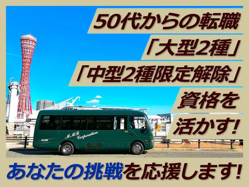 仕事内容 ■■■■■■ Pickup Point!■■■■■■ ✅大型2種があれば未経験OK! ✅月給22万円〜27万円+賞与年2回 ✅負担の少ない市内・近距離送迎 ✅社労士監修でムリな勤務シフト無し! ✅バス運転士未経験者歓迎(研修充実) / ゆとりのある運行スケジュールと 社労士による労務管理が一番の働きやすさ。 ━50代・Bさん・元配送ドライバー \ バス業界に興味を持ち2種免許を取得して 路線バス会社に就職しましたが 分刻みのバス運行に強い負担を感じて、 トラックに戻ろうかと思っていました。 しかし、そんな時に弊社求人を拝見し ”ムリせず負担の少ない”という部分に惹かれ 最後にチャレンジしてみました。 実際に働いて感じたのは、 ・長時間の連続運転は一切なし ・適度に一息つける運行スケジュール ・社労士監修のシフト管理 こういった点が前職とは大きく違い、 日々の業務にゆとりを持つことができています。 路線バスのような慌しさはなく、 落ち着いて働くことができる体制なので、 『ここなら定年までうまく続けられそう』 そう思うことができましたね! ========== 【具体的な業務内容】 ・冠婚葬祭送迎 ・マンション送迎 ・企業送迎 ・学校クラブ送迎 ・観光 など 一般貸切バスの 業務全般をお任せします。 運行エリアは 神戸市内や近隣エリアがメインで、 長距離運行や宿泊を伴う運行は ほとんどありません。 <働き方のイメージ> 市内・近距離メインなので、 短時間の送迎を繰り返しながら 勤務していただきます。 各運行の間には待機時間もあり、 こまめに休憩を取りながら 業務を行うことができる働き方です。 また、顧問社労士と連携しながら 無理のないシフト管理を行っているため、 「夜遅めシフトから翌日に早朝シフト」 のような無理なシフトは絶対にありません。 負担の少ないバス運行だからこそ、 定年まで現役で活躍し続けられるように “ムリのない働き方”を会社として徹底しています。 □■入社後の流れ■□ まずは座学研修で安全運転や 基本ルールをしっかり学び、 その後、先輩ドライバーの運転に同乗して 実際の業務の流れや注意点を覚えます。 運転に慣れてきたら、 先輩のサポートのもと実務にチャレンジ。 最初は決まったルートの送迎から始めるので 道順も覚えやすく、ペースもつかみやすいです。 慣れてきたら、冠婚葬祭や観光送迎など、 新たな業務にも少しずつ挑戦していきます。 ========== 【当社MMBについて】 大阪・兵庫県において、マイクロバス専門の 送迎サービスを広く提供しています。 貸切や送迎のみでマイクロバスの事業を 展開する会社は珍しく、 神戸では数社もありません。 それゆえ依頼は絶えることがなく、 業績は常に安定しています。 ”神戸で、ムリなく、長く働ける” マイクロバス送迎ドライバーとして 新しい一歩を踏み出しませんか?