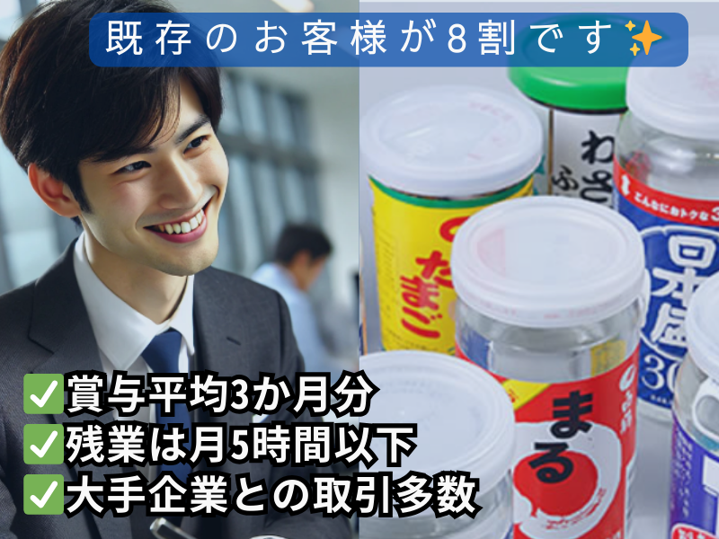 仕事内容 \8割既存顧客対応の営業/ ■担当のお客さまを訪問し、ニーズをヒアリング ■ヒアリング内容を持ち帰って社内の関係部署と検討し、提案書を作成 ■提案書が通れば、価格や納期といった詳細を提示・提案 ■受注後は、製造・納期の手配や管理 プラスチック製品の企画、提案営業をお任せ致します。 ▼簡単な募集内容▼ 【雇用形態】正社員 【給与】年収:300万円〜430万円 【勤務時間】08:30~17:30(所定労働時間8時間) 【勤務地】奈良県磯城郡三宅町伴堂551 【募集要件】未経験大歓迎です ★この求人のアピールポイント ■顧客先は大手企業ばかりなので、やりがいが多数 ■自身が携わった製品が店頭に並んでいるのを見た時は、誇らしく思える ■昨年度の平均賞与額は3ヵ月分◎残業月5時間以下 ■直行直帰あり・福利厚生が充実(家族手当、家賃補助等) *********** 【どんな会社なの?】 当社は1961年(昭和36年)に創業しました。 清潔さが第一の食品関連、酒造用特殊プラスチックの製品メーカーとして、奈良県でスタートした私どもは、経済の成長につれて増大するプラスチック需要と共に、今日まで業界のパイオニア(プラスチックパッケージの総合メーカー)として成長を重ねて参りました。 当社製品は、国内シェアNo.1のカップ酒用ポリキャップをはじめ、大手化粧品メーカーのボトル、シャンプー等の詰め替え用パウチなどを製造している事で業界内から知名度を獲得しており、主なお取引先は既存の一部上場企業や大手優良企業様ばかりです。 【お仕事内容】 化粧品・食品メーカーをメイン顧客とした、プラスチック製品の企画、提案営業をお任せ致します。 お酒、食品、化粧品、シャンプーなどを入れるプラスチック製の容器を、直接メーカーに向けて営業していただきます。 具体的には・・・ ■担当のお客さまを訪問し、ニーズをヒアリング ■ヒアリング内容を持ち帰って社内の関係部署と検討し、提案書を作成 ■提案書が通れば、価格や納期といった詳細を提示・提案 ■受注後は、製造・納期の手配や管理 などなど プラスチックパッケージの総合メーカーである当社では、製品の企画、設計、製造、組立までの全ての工程を自社で対応が可能な為、 大手企業様を中心に多彩な業界に進出しており、求められるニーズも様々です。 立派な営業実績より、顧客先のお悩み事や課題を親身に一緒に考え、関係構築が上手くできるお方が活躍できるお仕事です。 担当エリア : 全国 営業ノルマ : ノルマ無はなく、目標がある。 新規既存割合 : 新規2割 / 既存8割 直行直帰有無 : 有 社用車 : アクア等(原則一人1台) 出張頻度 : 人によって差があるが1~2日/週 ★入社後の流れ 入社後は、先ず2〜3カ月を目途に、基本的な商品知識を身につけていただきます。 その後、先輩社員への同行から始めていただき、提案、製造、納品までの一連の流れを学んでいただきます。徐々に既存のお客さまを引き継ぎ、仕事に慣れていただく事を想定しております。凡そ1年ほど同行・サポートを通して仕事を学び、その後お客様を一人で担当します。 【お仕事の特徴】 ■顧客先は大手企業ばかりなので、やりがいが多数 ■自身が携わった製品が店頭に並んでいるのを見た時は、誇らしく思える ■昨年度の平均賞与額は3ヵ月分◎残業月5時間以下 ■直行直帰あり・福利厚生が充実(家族手当、家賃補助等) 当社での働き方としては、月の残業が5時間以下なので17:30には退社してプライベートを充実させることが可能です。社長や上司との距離が近く、風通しがいいのが魅力です。若手や中途入社した社員も多数活躍しています。 独り立ちまでしっかり研修がありますし、ノルマもありません。既にお取引のあるお客様の対応からスタートするので、営業活動に力が入れやすいと思います。 お仕事内容や働き方などについては面接でもしっかりとご説明させていただきますので、当社でのお仕事に興味を持っていただけた方のご応募をお待ちしています。