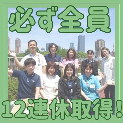 休日休暇 年間休日:112日 (4週8休制:特別休暇含む) +有給休暇11日 ☆1年目は有給休暇と合わせて 1年で123日休めます ☆リフレッシュ休暇:12日間連続 ※入社1年目から理事長まで役職に 関係無く全員が取得しています! 年次有給休暇:初年度11日 (3ヶ月目から有給が発生します) ※毎年日数は増えていき、7年目からは 毎年20日間の付与 ※有給休暇の取得平均日数は13日 (2019年実績)です。 ワークライフバランス休暇:年3日 (全員に付与) 結婚休暇/産前・産後休暇/育児休業 子女出生時特別休暇(配偶者出産時) 子どもの看護休暇/介護休暇 忌引休暇/ボランティア休暇 ドナー休暇/裁判員休暇 進学等休暇制度 など ◇産前・産後休暇、育児休暇 当法人での休暇取得率は以下の通りです。 ・産前・産後休暇 取得率 ⇒ 100% ・育児休暇 取得率 ⇒ 約97% 復帰後の時短制度等もあり安心して仕事 と子育てを両立出来る環境があります。 ※男性の育休100%を目指していて、 現在の取得率80%を超えています。