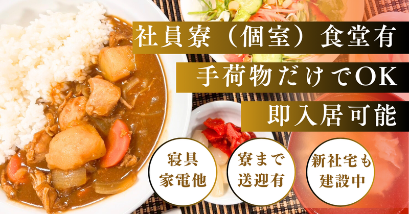 【保険制度】 雇用保険、労災保険、健康保険、厚生年金 待遇・福利厚生 【福利厚生】 ●賞与年3回/規定 ●昇給制度・表彰制度(報奨金)/規定 ●作業着・道具支給又は貸与あり/規定 ●マイカー通勤可・駐車場有 ●資格取得全額会社負担 社 員 寮 * 詳 細  ̄V ̄ ̄ ̄ ̄ ̄ ̄ ̄ ̄ ̄ ̄ ̄ ̄ ̄ ̄ ̄ ●即入寮可 ●寮から現場まで送迎あり ●全室個室のプライベート空間 ●寝具・エアコン・TV完備 ●社員食堂・夕食付